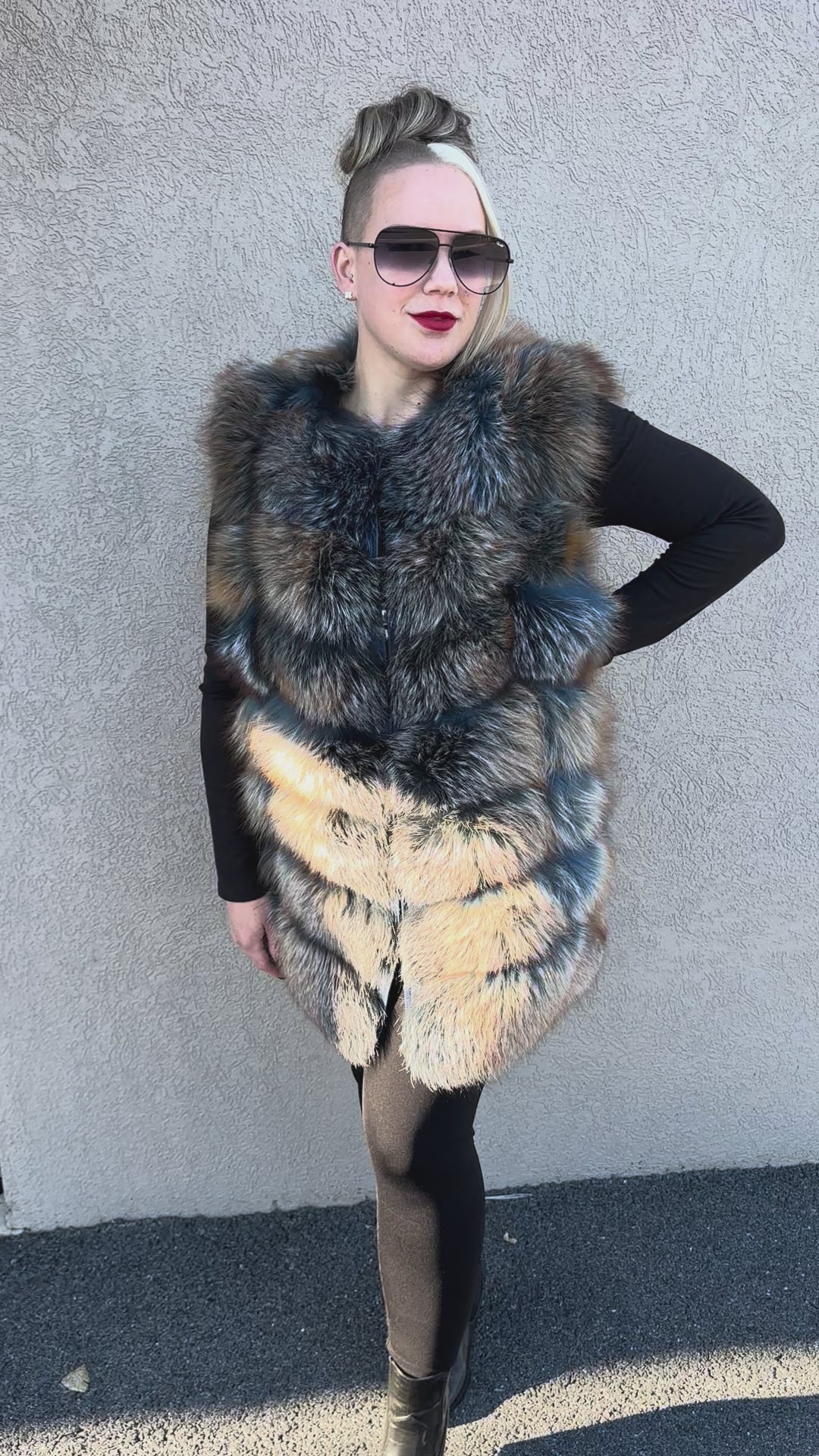 Everyone needs a fox fur vest. This vest is shown in dyed blue indigo and should be a staple in your fur collection. Available in sizes small to 4xl. This vest fits on the smaller side, size up for a roomier fit!